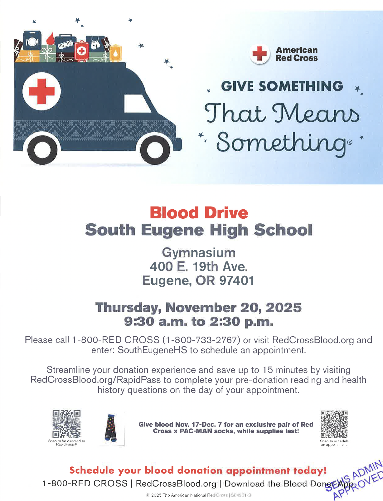 https://www.redcrossblood.org/give.html/drive-results?zipSponsor=SouthEugeneHS Click Image or Link to Sign-up